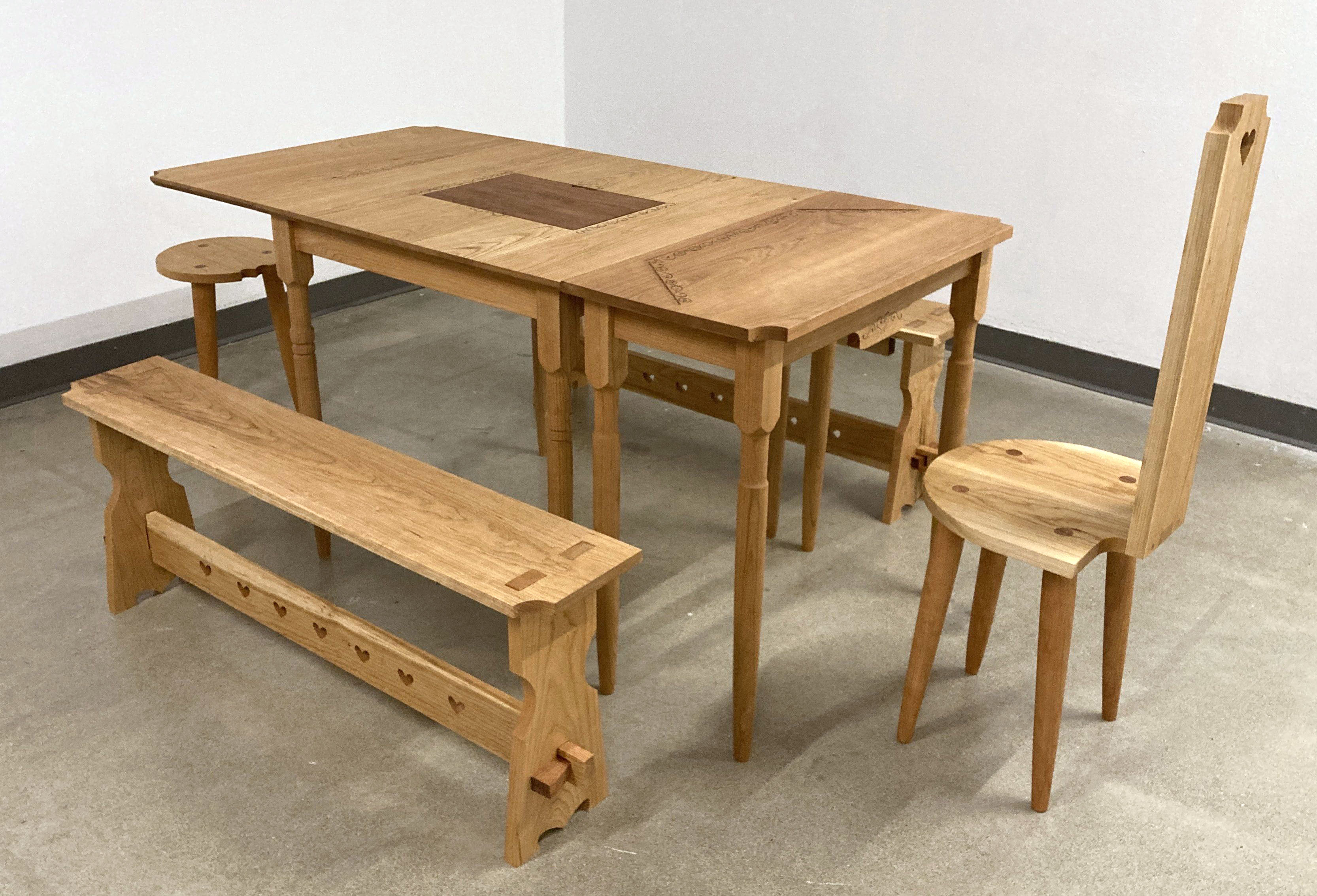 In my work, I have repeatedly been drawn to the subject of connection and relationships, and how my furniture can allow me to connect to others. My thesis project at Maine College of Art & Design, Beatritz, was inspired by tabletop role-playing games and the history of board games that precedes them.